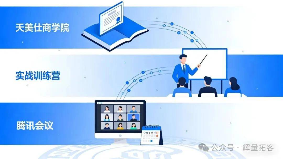 怕创业没人带?天美仕商学院 + 实战训练营 + 每日腾讯会议,传帮带 + ABC 法则落地,零经验也能 3 个月裂变百人团队